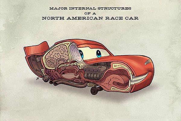 ——The first movie left me with a lot of unanswered questions. Cars 2? More so. Now we have spy cars, European villain cars, we have cars switching their fuel, and don’t even get me started on cars taking sentient airplanes to other car countries! What if we traveled that way? Need to get to Japan? Just crawl inside that sumo wrestler over there and you’ll be there in no time. Are humans inanimate objects in this world? Is there a novel animated kid’s film in this world where humans can talk and move around without being driven around by a sentient car? I don’t have the answers to these questions and it keeps me up at night. My wife is like “Please! Professor! Come to bed! I love you! It’s only a movie!” But I have to figure this out! Is there a Car God!?! I’m freaking out!