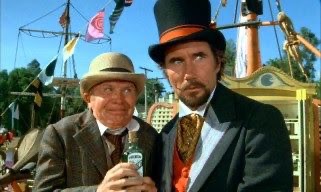 Jim Dale as Dr. Terminus (the snake oil salesman) and his partner played by Red Buttons are actually pretty great in retrospect now that I understand they were supposed to be funny. In fact they kind of steal the show. An elderly Mickey Rooney seems to have been let loose on the location as well and scurries all over the set doing standard Mickey Rooney things, chewing on scenery, rummaging through bins of old props for who knows what. It’s all pretty entertaining. All in all this film was pretty enjoyable when it was not traumatizing me.