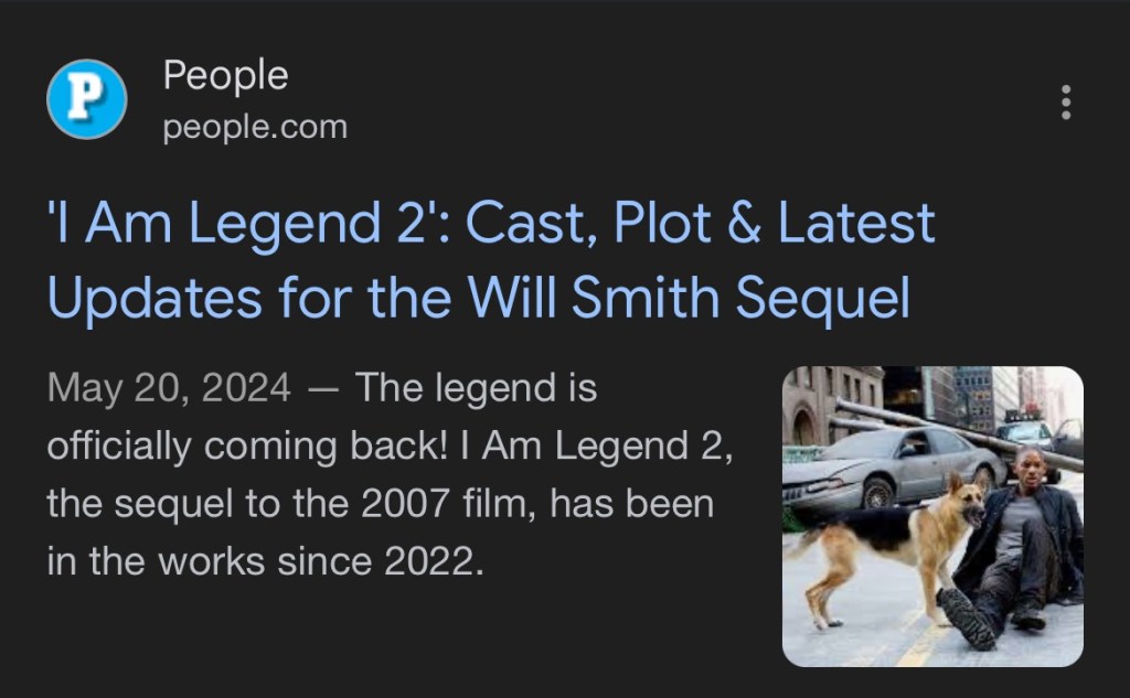 I Am Legend had a hopeful ending. And a gripping storyline. I’m not going to spell this out but if you love dogs, this isn’t the movie for you. If you don’t love dogs, you’re probably some kind of cloak-wearing bomb-worshiping anthropomorphic cannibal ape and you’ve earned my contempt on all fronts.