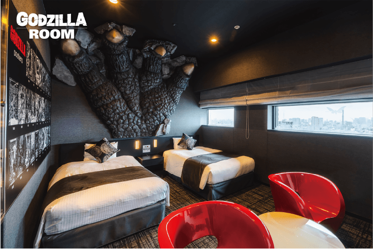 Japan went wild for the premiere of 2016’s Shin Godzilla. Promotions for the film included an 80 ton, 1:1 scale Godzilla head atop the Hotel Gracery which emits Smokey breath and roars each hour. This hotel features the Godzilla Room which is wired with effects. At the push of a button, a simulation initiates through the entire suite emulating a Godzilla attack on the hotel. Fans lucky enough to procure a night in this suite are thrilled beyond words.