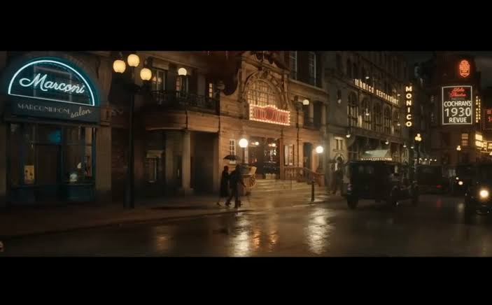 The opening money shot was quite impressive. Richmond Theater in West London recreated from a grainy 1929 photograph with its recently installed electric lights was magnificent. I could’ve watched a lot more of a film in this setting but the dimly illuminated, oft rained-on streets of London is not where the majority of this film takes place.
