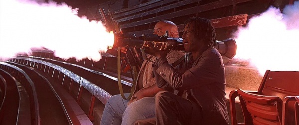 ——Finally, in conclusion, to settle the question I know you all have: The answer is yes, someone fires off a bazooka several times throughout the course of this film. I told you already, it’s a 90’s film. Yes, there’s helicopters too. 90’s!
